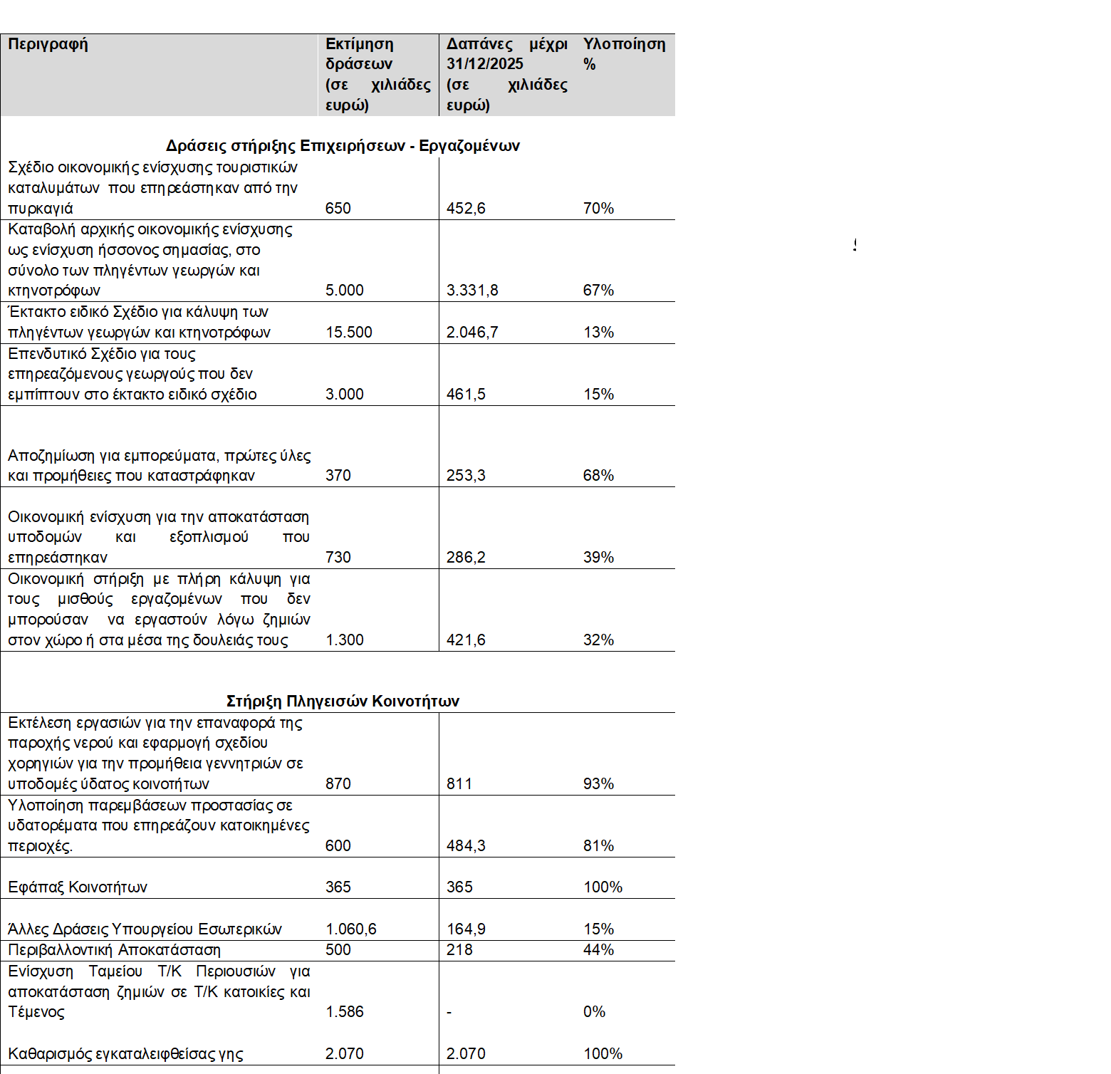 Κατά το έτος 2025, η Κυπριακή Δημοκρατία, στο πλαίσιο της στήριξης των πληγείσων και επηρεαζόμενων περιοχών, έχει προχωρήσει στην υλοποίηση δράσεων συνολικού ύψους €17,4 εκ., οι οποίες εντάσσονται στο Ολοκληρωμένο Σχέδιο Στήριξης συνολικού προϋπολογισμού €89,6 εκ., όπως αυτό καθορίστηκε βάσει των αποφάσεων του Υπουργικού Συμβουλίου. Επισημαίνεται ότι οι εν λόγω δαπάνες έχουν χρηματοδοτηθεί αποκλειστικά από τον κρατικό προϋπολογισμό της Κυπριακής Δημοκρατίας, χωρίς τη χρήση των εισφορών συμπολιτών μας ή οργανωμένων συνόλων, οι οποίες εξακολουθούν να τηρούνται σε ξεχωριστό τραπεζικό λογαριασμό. Αναφορικά με τον τρόπο διάθεσης των εν λόγω εισφορών, θα ακολουθήσει σχετική ενημέρωση, μετά τις σχετικές αποφάσεις που θα έχουν ανακοινωθεί από την Κυβέρνηση.